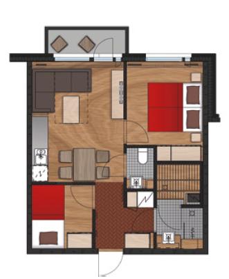 Visos apartamentos ir virtuve, atsevišķa tualete, sauna un plašs balkons. Katrā apartamentā atsevišķs skapis slēpēm un pārģērbšanās telpa. Visi apartamenti aprīkoti ar virtuves aprīkojumu, trauku mazgājamo mašīnu, mikroviļņu krāsni, trauku žāvētāju, 32’’ platekrāna TV, DVD atskaņotāju un bezmaksas bezvadu interneta pieslēgumu.